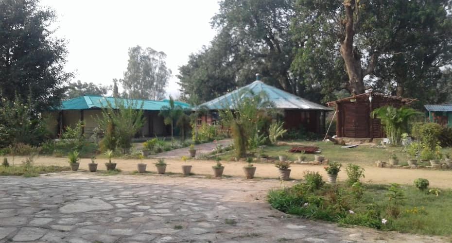 A serene garden scene with a cobblestone path leading to a traditional wooden house with a blue roof. The garden is lush with various plants and trees, and there are several potted plants lining the path. The atmosphere is calm and the lighting suggests it is either early morning or late afternoon. | Royal Heritage Resort, Village Tala, | 2b947b8e6ce4a188897364033b977dab9405fdeb34b43552ac26c72e8cfa8a6d | 000000031538 | 0 | 0 | 52 | 5 | 0 | 0 | |
