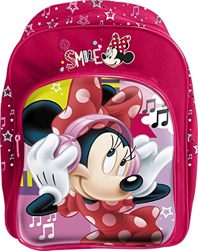 A pink backpack with a Minnie Mouse design, featuring a large Minnie Mouse character on the front, surrounded by musical notes and stars. The backpack has a zipper closure and is adorned with a 'SMILE' text and a smaller Minnie Mouse character on the top left corner. | Star Licensing Licensing Mochila Infantil | 700af3133bdf7a387ff920428091e3ab84d2a582320f1de22bb310bef49b0c7f | 000000032345 | 0 | 0 | 47 | 5 | 0 | 0 | |