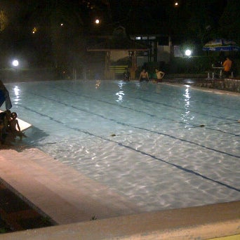A group of people are gathered around a swimming pool at night. The pool is empty, and the area is illuminated by artificial lights. There are several individuals standing near the pool's edge, while others are scattered around the pool deck. The pool has lane markers, and the water appears calm. The surrounding area i... | Photo taken at Pemandian Air Panas - Hotel Duta Wisata Guci by Aristiani S. on 11/25/2011 | 3c447f4e0e8a34e981def139f58d840e5a83124fe353ee087eec34ce68ea94fc | 000000032718 | 0 | 0 | 72 | 16 | 0 | 0 | |