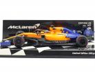 A detailed model of a Formula 1 race car is displayed on a checkered background. The model is predominantly orange with blue and black accents, and it features the name 'McLaren' on the side. The car is positioned on a black base with the words '1:18 SCALE MODEL CAR' and 'LIMITED EDITION 1/1' visible. | Fernando Alonso McLaren MCL34 #14 test Bahrain F1 2019 1:43 Minichamps | fe026e12722d66a18870a7a77271284de3efe013c2be5c51035b2e5d30273772 | 000000032721 | 0 | 0 | 54 | 11 | 0 | 0 | |