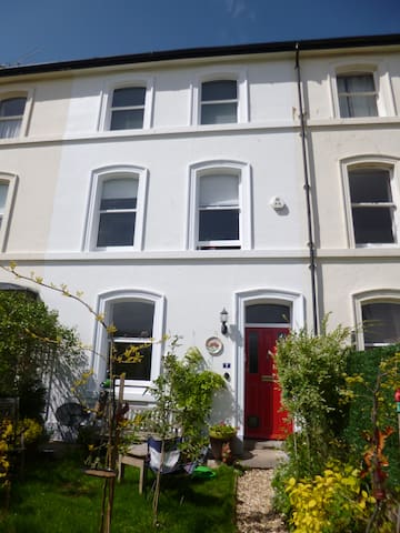 A white two-story house with a red front door and a red garage door. The house has a white trim around the windows and a black roof. There are two potted plants on the front lawn, and a wooden bench is placed on the grass. The house is surrounded by a green hedge, and there is a clear blue sky above. | Regency Wessex Townhouse - Dorchester - Talo | 82b6c83c7e74c557e8baf2de555f886114415863cfacd18b60b1e6b1a9315b0e | 000000033033 | 0 | 0 | 61 | 7 | 0 | 0 | |