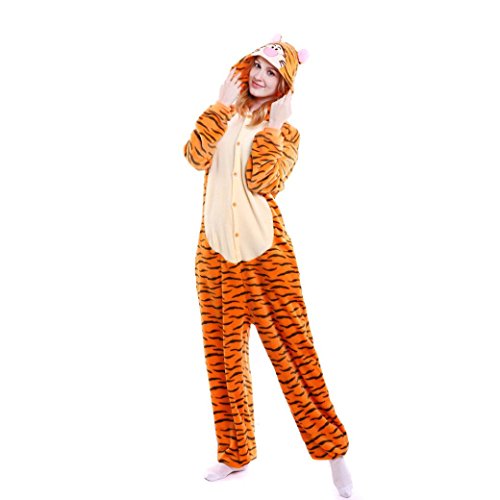A woman is standing in a white studio wearing a full-body orange tiger onesie with black stripes and a matching headpiece with tiger ears. | BYSTE Cosplay Pigiama Animali Unisex Pigiama Party Sleepwear Costume Cosplay Flanella tuta Pantaloni | 79fa27c4d6d9ec42223a5703ce749bb85c3a4c3655f6645670419bac694bfd9f | 000000033131 | 0 | 0 | 24 | 13 | 0 | 0 | |