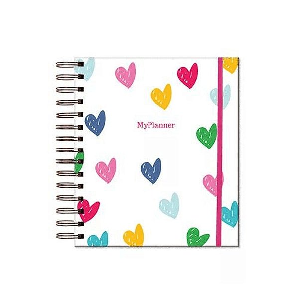 A spiral-bound notebook with a cover featuring a pattern of pink and blue hearts. The word 'My Planner' is written in the center of the cover. The notebook has a pink and white striped binding and is filled with lined pages. | My Planner Permanente Little Heart Colors EVERTOP | b857028120ba671de180beed50e9850d1e76ad24eff66750174543bbc83957a5 | 000000033771 | 0 | 0 | 41 | 7 | 0 | 0 | |