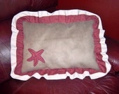 A plush pillow with a red and white star design on the corner is placed on a red couch. | Sea Side Cottage Country Pillow | 70d33e98fb3f61d2eefe58dac636106d606f5ee7ed94104302d8a6253b0e0522 | 000000033745 | 0 | 0 | 19 | 5 | 0 | 0 | |
