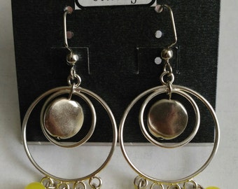 A pair of silver hoop earrings with a textured surface and a yellow accent at the bottom of each hoop is displayed on a black background with a price tag. | Yellow Chandelier Earrings | 5d50eb4fb1ab5dec93d1cf0cb21fa922c214b5f2df8cedb71cfb769251103bf5 | 000000033751 | 0 | 0 | 30 | 3 | 0 | 0 | |