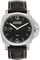 A close-up image of a wristwatch with a black dial, silver casing, and brown leather strap. The watch has a date display at the 3 o'clock position and a sub-dial at the 6 o'clock position. The hands of the watch are black, and the hour markers are silver. The watch is set against a white background. | Luminor 1950 Special Edition Stainless Steel Manual | c105248f526518264c41abba4301f602caaf61f2ea6022ac86f1e80363ea03f9 | 000000033690 | 0 | 0 | 56 | 7 | 0 | 0 | |
