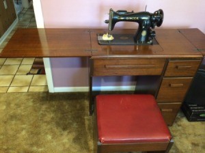 A vintage sewing machine sits on a wooden desk with a red stool in front of it. The desk is placed on a carpeted floor, and there is a wall with a pinkish hue behind it. | Value of a Singer 15-91 Sewing Machine - vintage machine in cabinet | 018ecd679b3ff23e6b1cd8ce0f6e51789548233dee94b17ded01c937ac33c42f | 000000033813 | 0 | 0 | 36 | 12 | 0 | 0 | |
