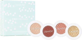 A set of four round, white cosmetic powder samples with a textured surface, each with a different color and the word 'COLOUR' in the center. The samples are arranged in a row, with the first sample on the left being a light beige color, the second sample being a light brown color, the third sample being a darker brown ... | Colourpop First Charmer Super Shock Shadow Foursome | 28686e7a273839cb99be5e19799304983fd3907b214b50028f39afe402998224 | 000000034450 | 0 | 0 | 91 | 7 | 0 | 0 | |
