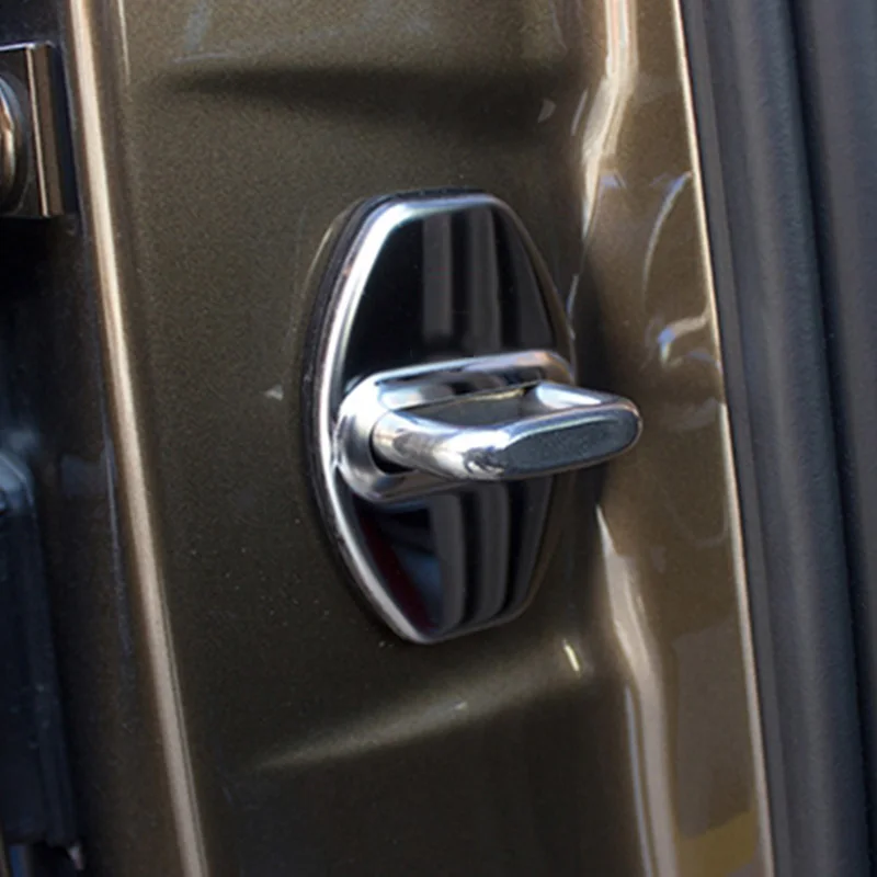 A close-up of a car door handle with a metallic finish. The handle is positioned on the right side of the image, and the door is painted in a dark green color. The handle has a circular shape with a raised edge and a metallic knob in the center. The door's surface is smooth, and there is a slight reflection visible on ... | Stainless Steel Car Door lock cover fit for b5 b6 b7 b8 a3 a4 a5 a6 q5 q3 q7 c6 Door lock protecting cap car accessorie | 40c30a6399b03c0f7748d9ee777d7a1568ea1a8d59b54064f9d78ab058d347ad | 000000034775 | 0 | 0 | 64 | 26 | 0 | 0 | |