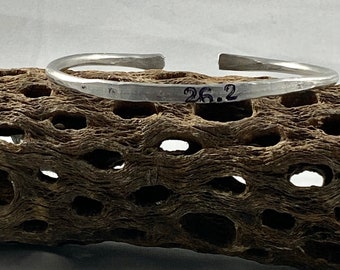 A silver ring with an engraved number '26.2' is placed on a textured wooden surface. | Marathon Armature Wire Adjustable Bracelet * Marathon Bracelet*Adjustable Silver Bracelet for Runners*Hand-Stamped * Runner's Bracelet | 1f07bac1fe2455ec739210c64475e8e2d06146ea8bd4e1c268143d99ba3dd0ec | 000000034805 | 0 | 0 | 15 | 15 | 0 | 0 | |