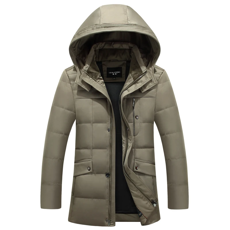 A beige puffer jacket with a hood is displayed against a white background. The jacket has a zipper closure and multiple pockets, including two chest pockets and two side pockets. The hood is partially zipped up, and the jacket is worn over a black t-shirt. The brand label is visible on the left side of the jacket. | Men winter Hoodies quilted jacket warm fashion Men's puffer overcoat parka Outwear Winter cotton padded hooded warm coat thick mcckle winter jacket with fur collar hooded cotton padded long puffer coat outwear women fashion thickening warm parka overcoat | 34fe2962a0d19e9be01c565f254d0e1c9e1cb0fabe4de4e35d856486ade87a68 | 000000034625 | 0 | 0 | 57 | 38 | 0 | 0 | |