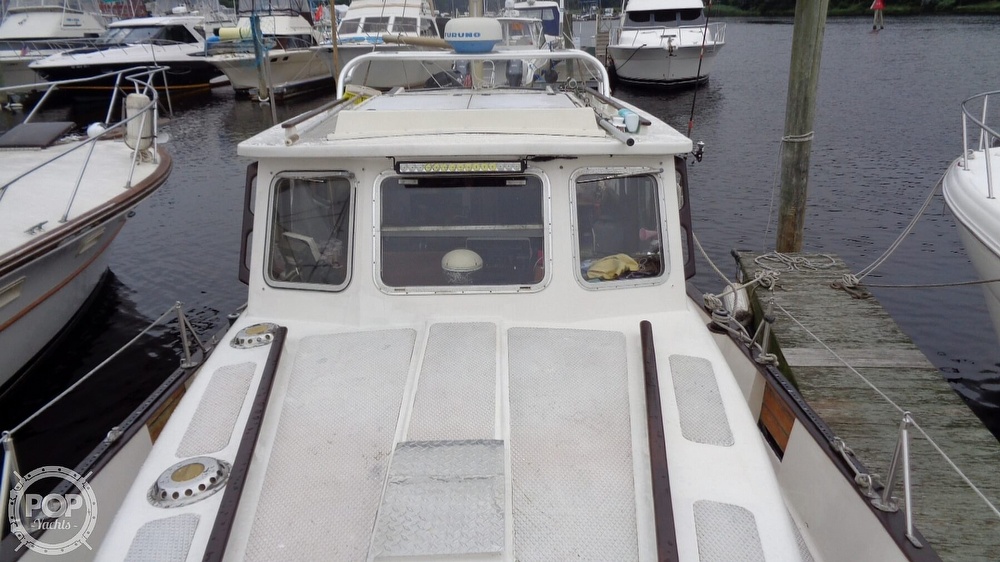 A white boat with a weathered exterior is docked at a marina, surrounded by other boats. The boat has a small cabin with a window and a door, and there is a wooden dock nearby. The water is calm, and the scene appears to be set during the day. | 1977 Fisher boat for sale, model of the boat is 30 Pilot & Image # 24 of 40 | aaec940a96afb7ce9c5d35a2da8cf5f7c7de36326fb06d72259f22d7532f5ad0 | 000000035011 | 0 | 0 | 49 | 18 | 0 | 0 | |