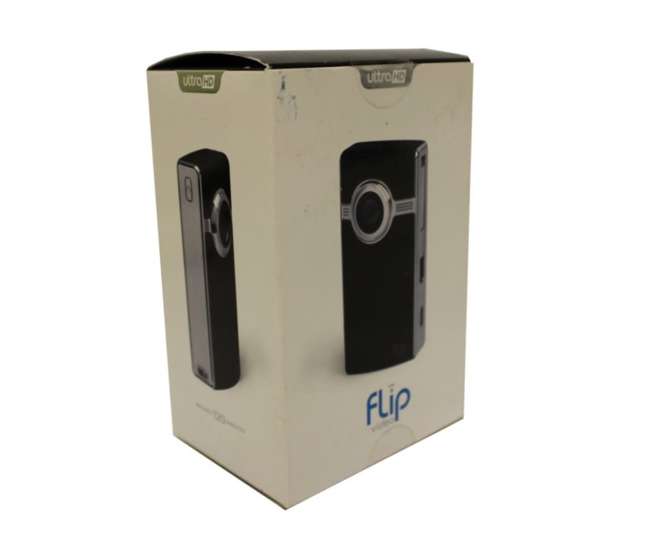 A white box with a green label on the top left corner and a black label on the bottom right corner. The box contains two black Flip cameras, each with a silver lens and a black button on the top. The cameras are placed side by side, with the lenses facing the viewer. The box is set against a white background. | U2120B Flip U2120B UltraHD Camcorder 8 GB | 1e70ac8d8001f805c9e625fd10d4c37f37a9f1686b8fee1f4ce6dc45354d51bb | 000000034907 | 0 | 0 | 61 | 7 | 0 | 0 | |