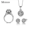 A collection of jewelry pieces is displayed against a white background. The collection includes a ring with a round-cut diamond, a pair of earrings with round-cut diamonds, and a pendant with a round-cut diamond. The jewelry is made of silver and has a modern design. The word 'MODAN' is written at the top left corner o... | 90% off Wedding Jewelry Sets for Brides 925 Sterling Silver AAAAA Level CZ Stud Earrings Ring Necklace Bridal Jewelry Set | 62df0b1e5537864475916fa4650161cc0bee98176b2a5ff873a49251174fa000 | 000000035136 | 0 | 0 | 58 | 20 | 0 | 0 | |