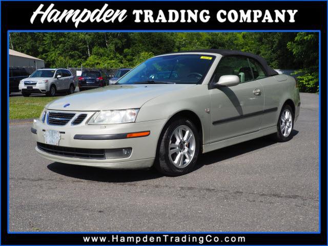 A silver convertible car is parked on a paved surface with a forest in the background. The car has a yellow license plate and a yellow tag on the windshield. There are other cars and a truck in the background, and the scene appears to be a parking lot or a driveway. | 2006 Saab 9-3 2dr Conv for sale in Hampden, MA | ae77c208dafd3d8020b3f7259bbbb8658295769071e48da3478ca06c5a1e5485 | 000000035147 | 0 | 0 | 52 | 10 | 0 | 0 | |