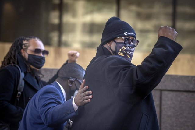 A group of people is standing outside, with one person wearing a black beanie and a black mask with a yellow emblem. Another person is wearing a black beanie and a black mask with a yellow emblem. The third person is wearing a black beanie and a black mask with a yellow emblem. The fourth person is wearing a black bean... | 01 April 2021, US, Minneapolis: George Floyd's family member Philonise Floyd makes his way into the Hennepin County Government Center for the fourth day of the trial against former Minneapolis police officer Derek Chauvin in the death of George Floyd. Pho | f810f8e4bd43405173e8d0b7c932da70245254d2076c81508afd7e6203f03037 | 000000035216 | 0 | 0 | 114 | 41 | 0 | 0 | |