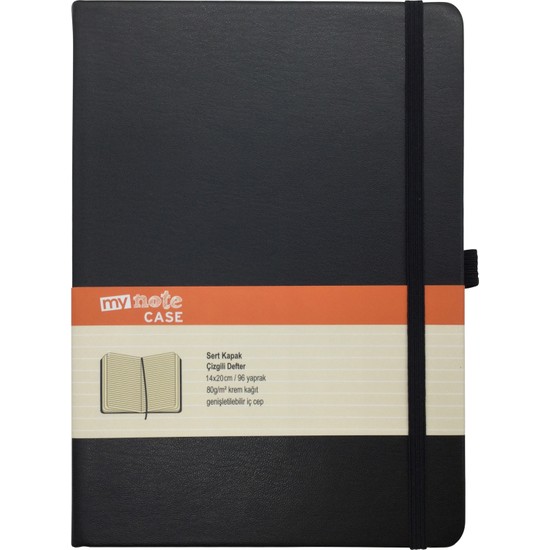 A black notebook with a textured cover and a spine featuring the text 'MY NOTE CASE' in orange. The notebook has a bookmark ribbon and is closed, displaying a blank page with a grid pattern. | Mynote Case Extra 14 x 20 Def.96 Yp.Ciz-Siyah | cfb0bdc8ce51ecb44969fee39666a1a57b86a224ab128c9df40574e135e8529d | 000000035146 | 0 | 0 | 35 | 8 | 0 | 0 | |