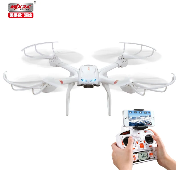 A white drone with blue LED lights on the front is hovering in the air. Below it, a person's hand is holding a remote control with a smartphone attached to it, displaying a blue sky with clouds and a white bird. The drone and remote control are both labeled with Chinese characters. | MJX X101 4CH 6-Axis 360 Flips One-key-return 2.4GHz Headless RC Quadcopter Drone w Support FPV Camera RTF original jjrc h36 rc drone 2 4g 4ch 6 axis gyro rtf quadcopter 3d flip headless mode one key return anti crush ufo mini drones | c51a6d96fa97f2f18da660f256408c7977f33ac2d3c269441fc189a21ce7e868 | 000000035380 | 0 | 0 | 52 | 42 | 0 | 0 | |