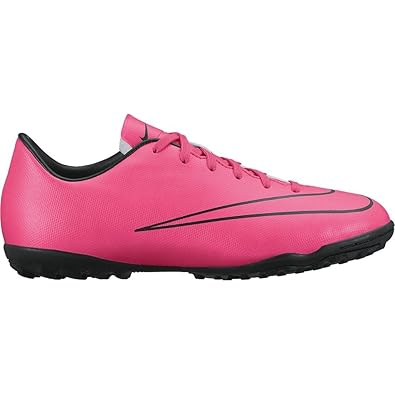 A pink sneaker with black accents is displayed against a white background. The sneaker has a low-top design with a lace-up front, a black sole, and a black toe cap. The upper part of the sneaker is made of a textured material with a mesh-like pattern. The Nike swoosh logo is visible on the side of the sneaker. | Nike Jr. Victory V IC Indoor Soccer Shoe (Hyper Pink) Sz. 3Y | e3e0345905d0db365b7685b695cbf90a5e6033df230aa999c5b31beb47d7e3ac | 000000035414 | 0 | 0 | 58 | 12 | 0 | 0 | |