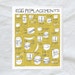 A white t-shirt with a large, colorful illustration of various food items and utensils on the front. The illustration includes bananas, a fork, a spoon, a bowl, a cup, and other items, all in a stylized, graphic form. The background is a yellowish color, and the text 'EGG PERFECT REPLACEMENTS' is written at the top in ... | vegan egg replacement poster - 11"x14" kitchen art print - customizable color | 4276e94cbdbfed3f021e3ee77576b1e6a29f16baac7904f36a417fe4e46a53b1 | 000000035354 | 0 | 0 | 60 | 12 | 0 | 0 | |