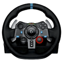A black steering wheel with a blue stripe and red accents is centered in the image. The wheel has a black rim with a textured surface and a central hub with a circular logo. There are two side-mounted buttons with a blue and red design, and a red button on the bottom right side of the wheel. The wheel is set against a ... | Imagem de VOLANTE P/ GAME G29 - COMPATIVEL PLAY STATION 3/4 E PC - LOGITECH | cea32265f7c8ccc539c5126a2d30d088b1230327f3bb2383be60093b56faece2 | 000000035322 | 0 | 0 | 65 | 15 | 0 | 0 | |