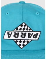 A teal baseball cap with a black and white checkered pattern on the front, featuring the word 'PANDA' in white with a black outline. The cap has a button on top and a visible stitching detail on the brim. | By Parra By Parra 6 Panel Hat Not Racing Mallard Green 42580 | 811143a29aab4bd00e9055f0139c39197116eb629647d8e6189c8a6a3a7adc96 | 000000035545 | 0 | 0 | 39 | 12 | 0 | 0 | |