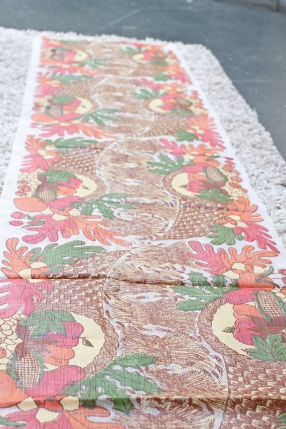 A beige carpet with a colorful woven tapestry featuring a pattern of leaves and flowers in shades of orange, red, and green, laid out on a white rug. | SALE - Thanksgiving Fall Autumn Plastic Table Runner Cloth | 6af0f9014ebe88863ebffb99b0343837cd14248104aa17a6ceb6daa9d56e9701 | 000000035463 | 0 | 0 | 28 | 9 | 0 | 0 | |