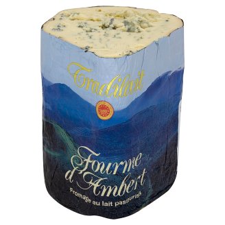A large block of cheese with a blue and white label featuring the name 'Tournay' and a mountain landscape design. The cheese has a golden-brown color and is wrapped in a blue and white paper. | Fourme D'Ambert Cheese | c15b597b4d86792904acd89476e76e14bbafb20e8cd2a508f9085e7d9db2dae9 | 000000035478 | 0 | 0 | 35 | 3 | 0 | 0 | |