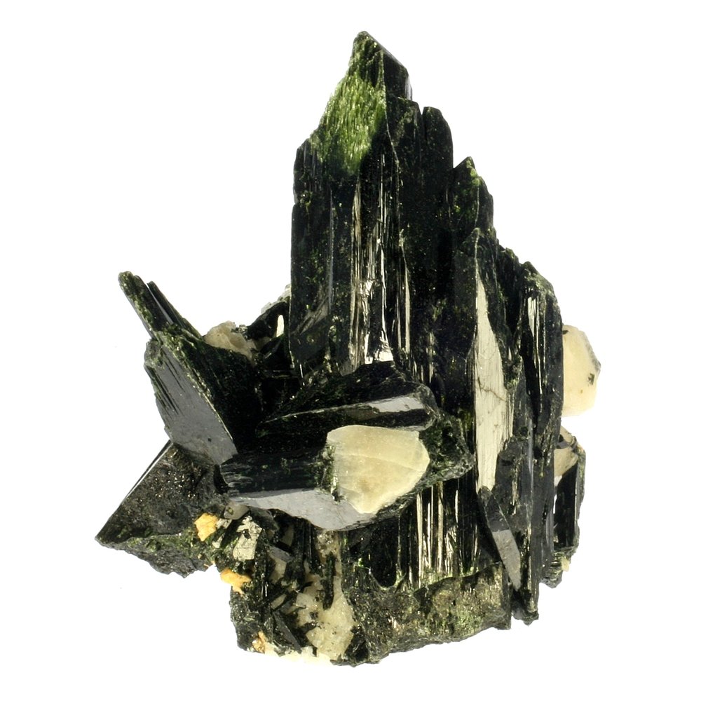 A black and white image of a mineral specimen with a pointed top and a flat base. The mineral has a rough texture with visible cracks and inclusions. It is set against a white background. | Beautiful Dark Green Crystals Aegerine Crystal Natural Rough approx 40mm | 11b938724c747e5044014d039469de2876b041fae7a69504abd057a3982e144c | 000000035412 | 0 | 0 | 35 | 10 | 0 | 0 | |