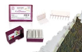 A close-up of a sewing kit with a purple box containing a spool of thread, a needle, and a small piece of fabric. The box has a label with the text 'SEWING KIT' and a barcode. The spool of thread is pink with a label that reads 'SEWING KIT'. The needle is white with a pink handle, and the small piece of fabric is a lig... | knitters pride Knitters Pride 8415 Knit Blockers | 847fb44c23a048ac59a942d1eb34a516678b4955e4225ce1ad4d53549adea897 | 000000035612 | 0 | 0 | 68 | 7 | 0 | 0 | |