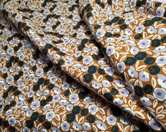 A close-up view of a brown fabric with a floral pattern. The fabric has a textured appearance with a variety of flower shapes and sizes, predominantly in shades of brown and purple. The flowers are densely packed, and the fabric appears to be folded, with the edges of the folds visible. | Joani-Morning | Sundown | Cotton and Steel | Quilting Cotton Fabric by the half yard | 989fbad2716319838b3df0b9232d06c7b65de0061c8740be5c9c26e7b1bea75b | 000000035512 | 0 | 0 | 51 | 15 | 0 | 0 | |