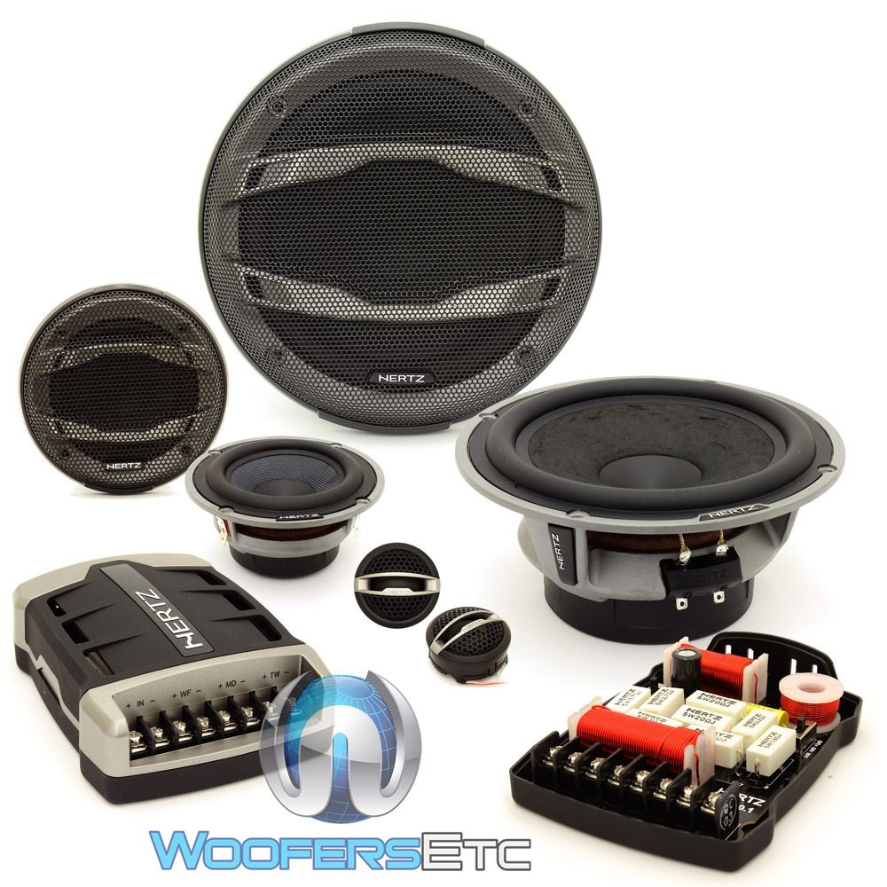 A collection of car audio equipment is displayed on a white background. The items include a large subwoofer with a black grille, a smaller subwoofer with a black grille, a tweeter, a mid-range speaker, and a crossover. There are also various wiring components such as fuses, a capacitor, and a wiring harness. The equipm... | Hertz Hsk163 Hi Energy 65 Pro 3 Way Component Speakers Tweeters Rockford Fosgate Crossovers New 177855441224 Ebay | 96528c3b90995079ce898fd867b26af457e04c936e377bb859fe62f86de1e573 | 000000035654 | 0 | 0 | 92 | 17 | 0 | 0 | |