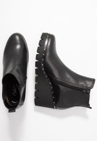 A pair of black leather boots with a pointed toe and a tall heel, featuring a zipper closure on the side and a buckle detail on the ankle. The boots are placed on a white background, with one boot standing upright and the other lying on its side. | Gabor - Ankle boots - schwarz | 80f2a123ef642a1611033c4a1cc23f479fcaa1f1b30dec1f023e642fba9e61ae | 000000035634 | 0 | 0 | 48 | 6 | 0 | 0 | |