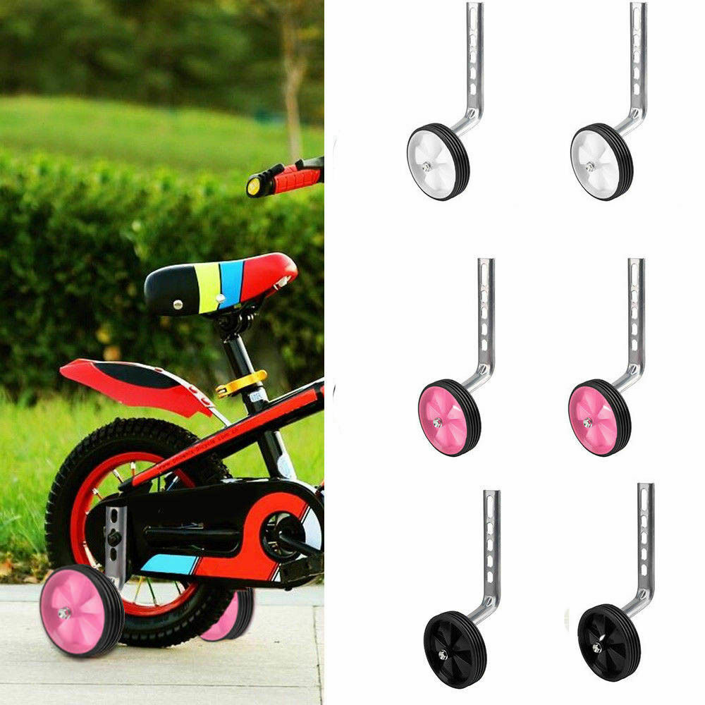 A child's tricycle with a colorful seat and handlebars is parked on a sidewalk. The tricycle has a black frame with red accents, a black seat with a colorful pattern, and a set of three wheels with black rims and pink tires. The handlebars are black with silver accents. | Universal Bicycle Bike Training Wheels Kids Adjustable Stabiliser Safety 12-20" | a27b89b434a4478921cbc33cb9ce22d70f98e00ea29865f5d18b808b974f9a59 | 000000003768 | 0 | 0 | 49 | 10 | 0 | 0 | |