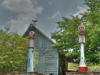 A rustic wooden barn with a weather vane on top is surrounded by lush greenery. Two vintage gas pumps with red and white colors stand prominently in front of the barn, one on the left and the other on the right. The sky is partly cloudy, and the overall scene has a serene, rural atmosphere. | Old Pumps Of Yesteryear | eac3c1c8730e207bfba32cffef08a5cedd5ff8d9e6eb394ba505d6b60e797213 | 000720943461 | 0 | 0 | 55 | 4 | 0 | 0 | |