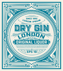 A vintage-style label for 'Dry Gin London Original Liquor' with a blue and white color scheme. The label features ornate designs and text, including 'Since 1892' and 'Loreem Ipsum'. The label is framed with a decorative border and has a 'EPS 10' watermark at the bottom right corner. | Gin label with floral ornaments | 2e4fe52efa1467aa0e5442803a8ff92ec8b4d646e554b8acda2b5057ec6c77f4 | 000720943464 | 0 | 0 | 48 | 5 | 0 | 0 | |