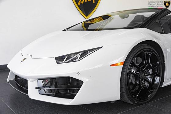 A white sports car with black accents is parked in front of a dealership with a black and yellow logo. The car has a sleek design with a closed top and is positioned on a black tiled floor. The dealership's interior is visible through the windshield, showing a wall with a logo and a black and yellow sign. | 2017 Lamborghini Huracan LP 580-2 Spyder | 146ef3cf2c31aefbfb66e30bb7db1d0988b799a1e0d787e94f4b41ce2868dbd0 | 000720944193 | 0 | 0 | 58 | 6 | 0 | 0 | |