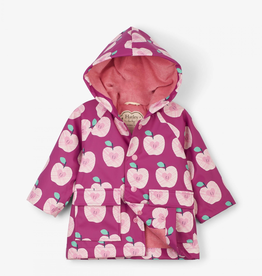 A child's pink raincoat with a hood, featuring a pattern of pink apples on a white background. The coat has a zipper closure and a small heart-shaped patch on the upper left side. | Hatley Baby Raincoat | 385bd417802fe780801be811667613ac26dbcc39080f9b7819420dacd21587b0 | 000720944307 | 0 | 0 | 33 | 3 | 0 | 0 | |