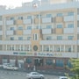 A modern hotel building with a yellow facade and white trim, featuring a balcony with a railing and several windows. The building has a flat roof with a decorative element. In front of the building, there is a row of palm trees and a patio area with outdoor seating, including tables and chairs. There are also bicycles parked near the entrance. | Hotel BELLA VISTA QAWRA | 7e45beb2be0603d085c3a585ddac87afaf8265f262aee86da44215fb6a89c24a | 000720944268 | 0 | 0 | 61 | 4 | 0 | 0 | |