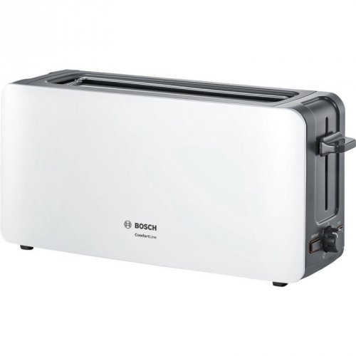 A white toaster with a black handle and a silver toaster knob is displayed against a white background. The toaster has a Bosch logo on the front and is positioned on a surface. | Toster BOSCH TAT6A001 (1090W; kolor bia\xc5\x82y) | 1596e533447d87f4c40fee8b41558e61389b05940df092e36e3d96e877b43d88 | 000720944261 | 0 | 0 | 33 | 6 | 0 | 0 | |