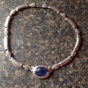 A silver bracelet with a blue gemstone is displayed on a dark surface. | Silver Choker | 16913c3c4b75404bb04cfbbc3e92ff137a14a054e160772dc51362e82320d8c9 | 000720944546 | 0 | 0 | 13 | 2 | 0 | 0 | |