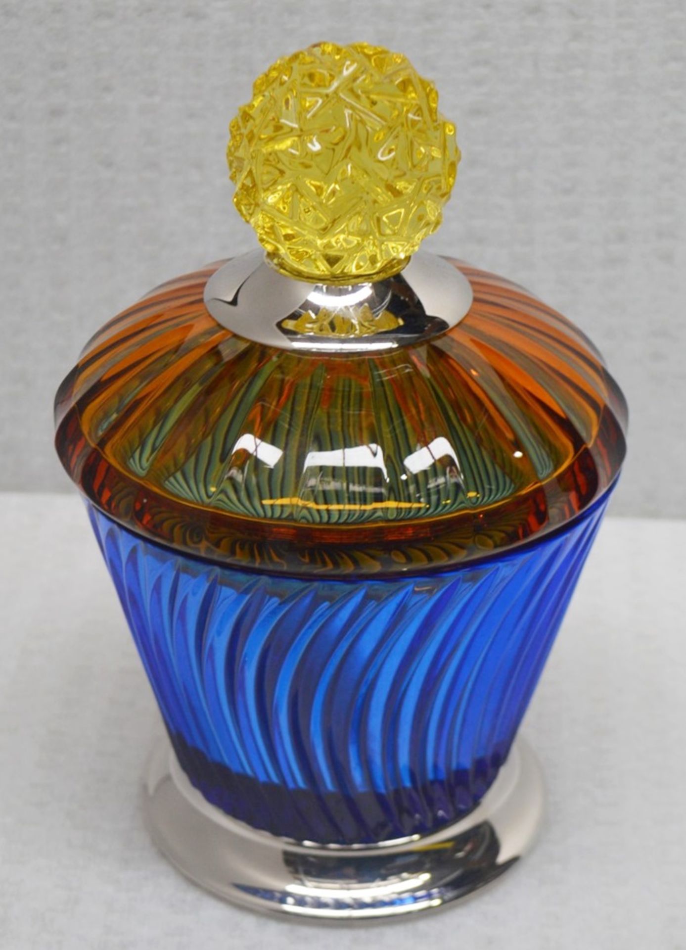 A glass perfume bottle with a colorful gradient design and a silver lid is displayed on a white background. | 1 x BALDI 'Home Jewels' Italian Hand-crafted Artisan Crystal Marika Cup In Blue & Orange, With A | c95ef311b90b68bcecce21dafb41e8e9e27aae71496011fc50e9d4d4df46099d | 000720943316 | 0 | 0 | 19 | 17 | 0 | 0 | |