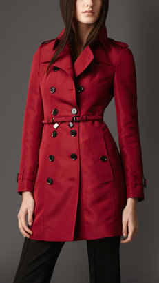 A woman is wearing a red trench coat with black buttons and a black belt. | Burberry Mid-Length Silk-Blend Faille Trench Coat | d929170c30321f1cb2a2d89e01477902059b9bcc695a702dd462eb02f7a70441 | 000720944928 | 0 | 0 | 15 | 6 | 0 | 0 | |