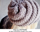 A close-up of a person's head wearing a knitted beanie with a large, textured pom-pom on top. The beanie is predominantly brown with some lighter brown and cream-colored sections. The person's hair is long and blonde, and the image is overlaid with text that reads, 'This is a pattern. A DIY tutorial to make your own.' | Instant Download Knitting Pattern - Knit Hat Pattern for Swirl Beanie Hat With and Without Visor - Knit Beanie Pattern Womens Accessories | dc5724d1cf0f7111a6e353ffa1925544e31ca8614ac5db2657d99639c75182bf | 000720946026 | 0 | 0 | 56 | 22 | 0 | 0 | |