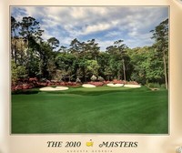 The first image shows a golf course with a clear sky and fluffy clouds. The course is lush and green, with several golf holes visible. The holes are marked with flags, and the surrounding area is dotted with trees. The image has a vintage feel, with a border around it and the text 'THE 2010 MASTERS' at the bottom. | 2010 Masters poster augusta national golf phil mickelson wins new pga | 4657632c9bc995b24c19656eb044d537440648a2553448524a94eb6e1f95e193 | 000910677924 | 0 | 0 | 59 | 11 | 0 | 0 | |