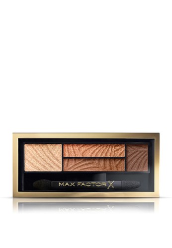 A close-up image of a single Max Factor eyeshadow palette with a gold frame and a black lid. The palette has a wooden texture on the bottom half and a smooth surface on the top half. The brand name 'MAX FACTOR' is visible on the bottom half. The palette is set against a white background with a soft shadow to the right. | Max Factor gold Smoke Eye Drama Shad 03 Sumptuos Gold 0B22EBED2B1650GS_1 | 02e86e791fe1b5618b102a823e06075c8da79e485c9e3e490744c9064c0ca1c9 | 000910678229 | 0 | 0 | 62 | 11 | 0 | 0 | |