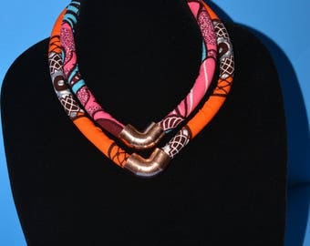 A colorful beaded necklace with a mix of pink, orange, and blue beads, and a large, shiny copper-colored pendant, is displayed on a black velvet stand against a blue background. | Color Block Two Strand Necklace | 2a51c426280b1dffd88c18056a466f1acc3e1f97cba9d87572e09b88eb5e78f0 | 000910678147 | 0 | 0 | 30 | 5 | 0 | 0 | |