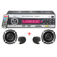 A modern car stereo system with a digital display, a remote control, and two speakers is shown. The stereo system has a sleek design with a black and silver color scheme. The digital display shows a pink background with various settings and information. The remote control has a simple design with a few buttons. The spe... | Car Stereo with FM, MP3, USB, SD Card Support + Speakers + Tweeters + 4GB Branded Pen Drive + Stylish Watch | 600f76c087d0b7d200f59bfc7005aa6eaba8e6e347c970e36d0411ae2b1c5b33 | 000910678397 | 0 | 0 | 72 | 21 | 0 | 0 | |