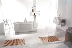 A modern bathroom with a large walk-in shower, a freestanding bathtub, and a wooden stool. The shower has a glass door and is equipped with a showerhead and a bottle of shower gel. The bathtub is white and placed next to a wooden cabinet with a sink and a mirror above it. There is a toilet paper holder on the wall, and... | ACO launches dedicated wetroom offering | 4ead593d80d7aec426126e000f6a3249cead0ffda7ac9cd12baceeef5ddf82f7 | 000910678372 | 0 | 0 | 75 | 5 | 0 | 0 | |