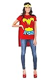 A woman is dressed in a red superhero costume with a yellow 'W' emblem on the chest, a red cape, and a red belt with a golden buckle. She is wearing red high heels and has a red tiara on her head. | Wonder Woman T-Shirt Costume 2X Red | 21b00765981ba791879015a1152db99fbb4ecc75691a93b6d5ca87424f2d0c2e | 000910678685 | 0 | 0 | 42 | 6 | 0 | 0 | |